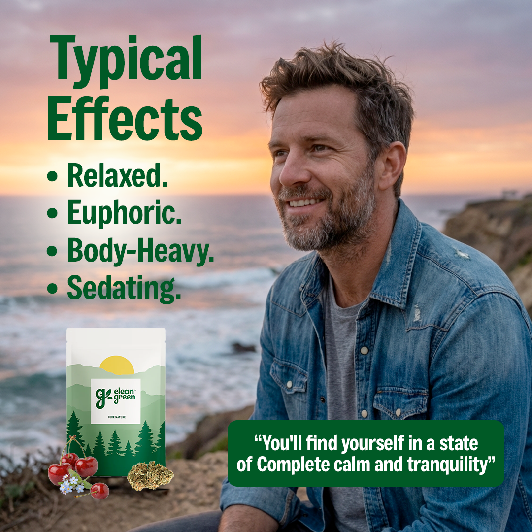 • Typical Effects: Relaxed, Euphoric, Body-Heavy, Sedating