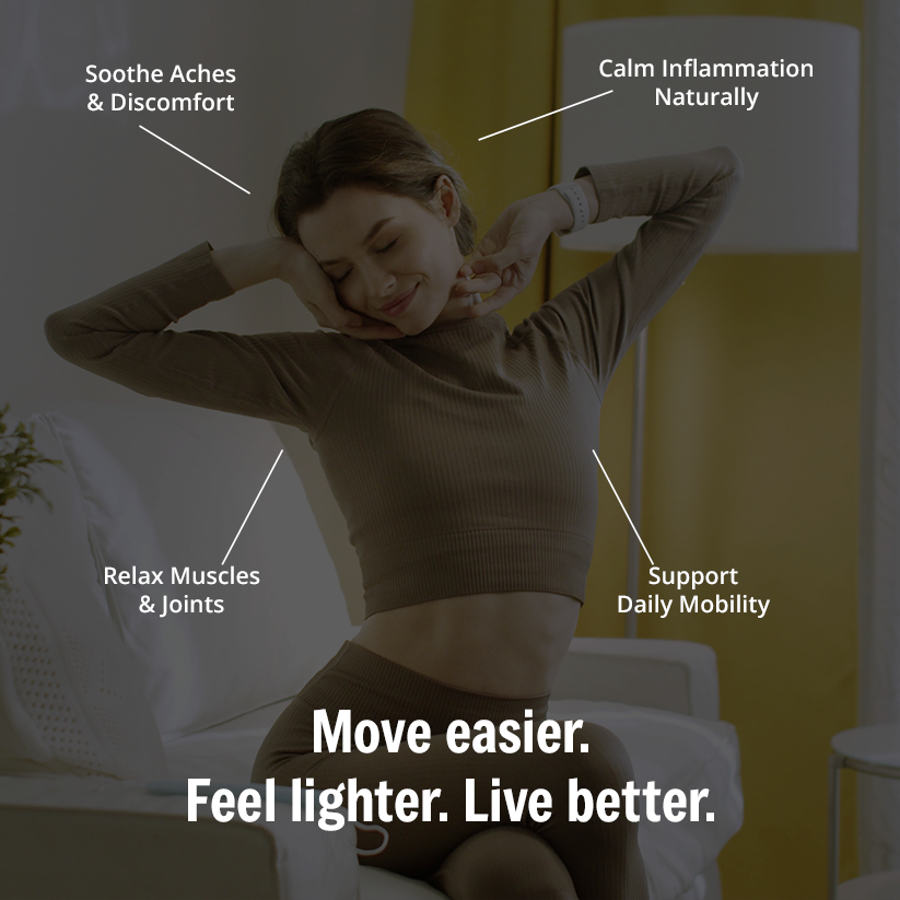 2. Let the blend of cannabinoids, adaptogens, and soothing botanicals help ease pain and calm inflammation naturally.